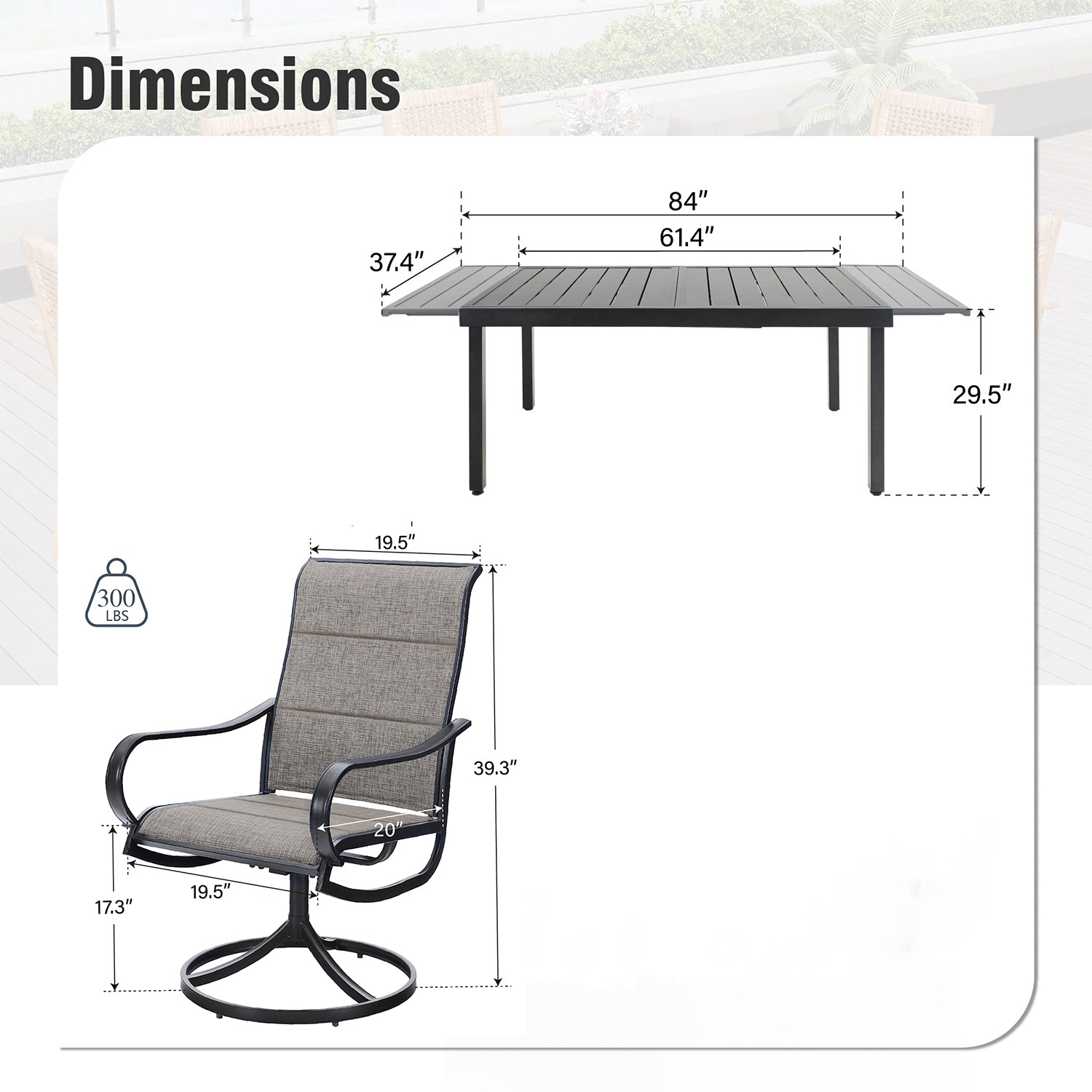 <b>可扩展餐桌:</b>我们的户外钢制餐桌用途广泛且适应性强,可扩展至宽敞的 83.8 英寸,既可容纳私密聚会,又可容纳大型聚会。