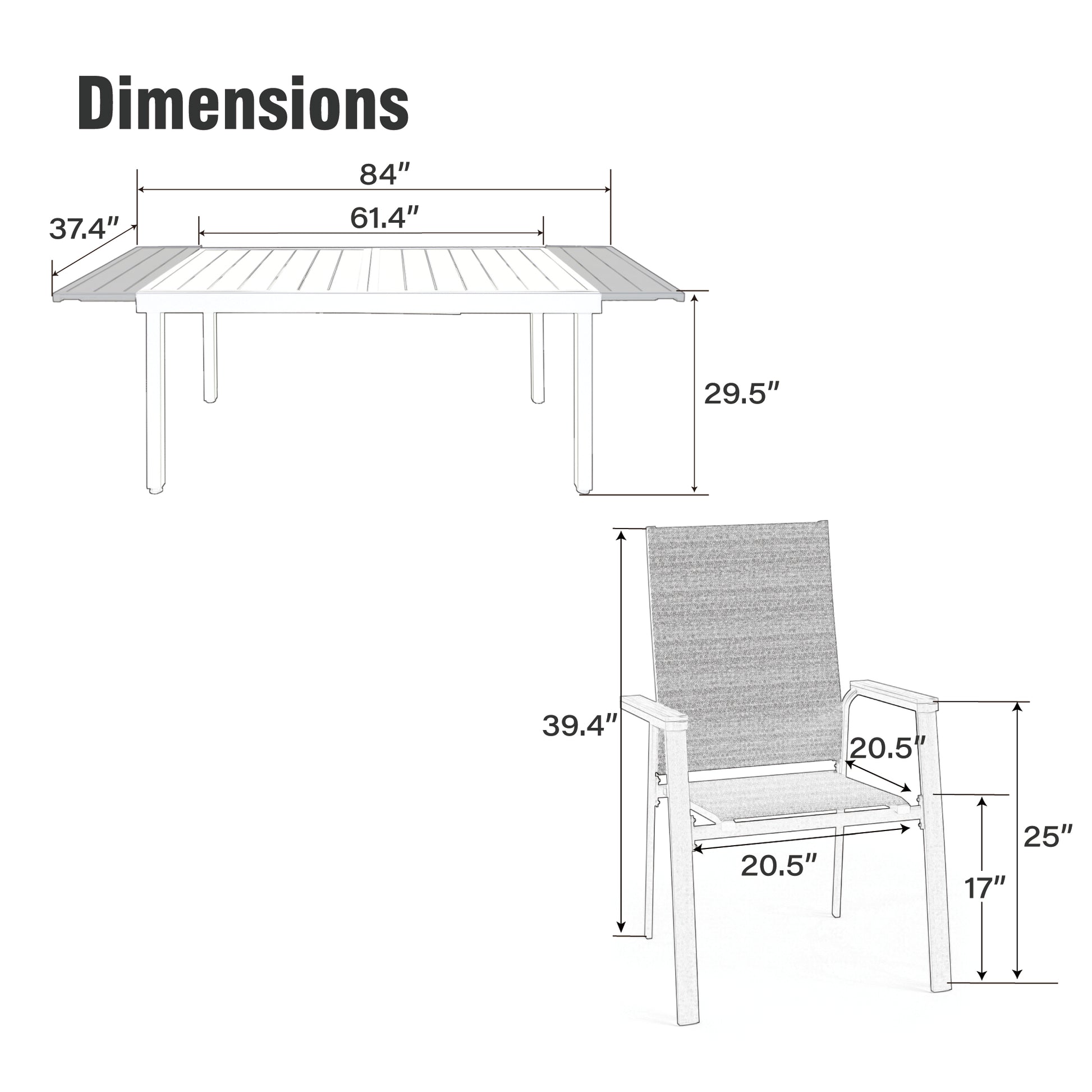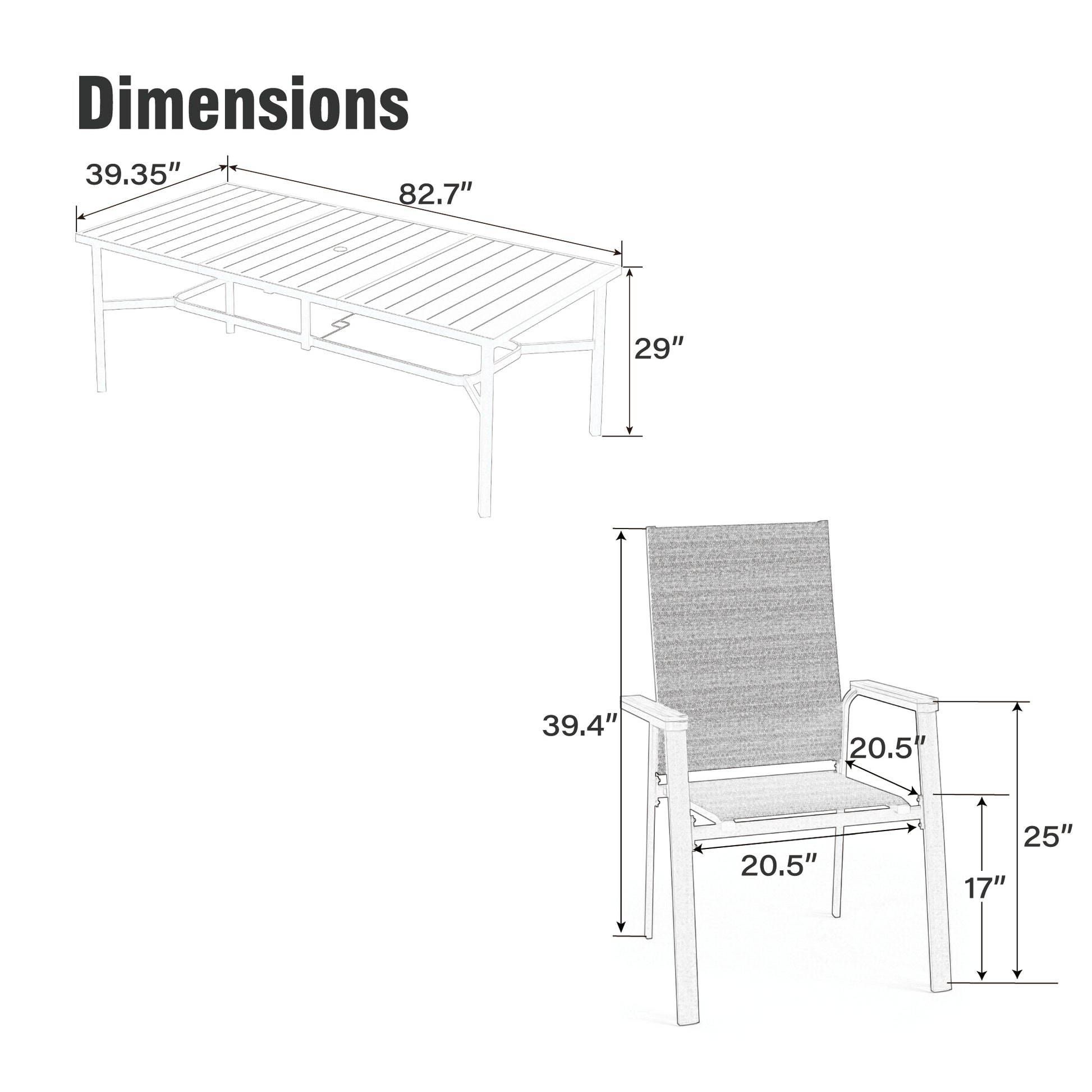 Captiva Designs 9 件套露台餐桌椅套装,配有可调节钢制长方形餐桌和 Textilene 铝制椅子