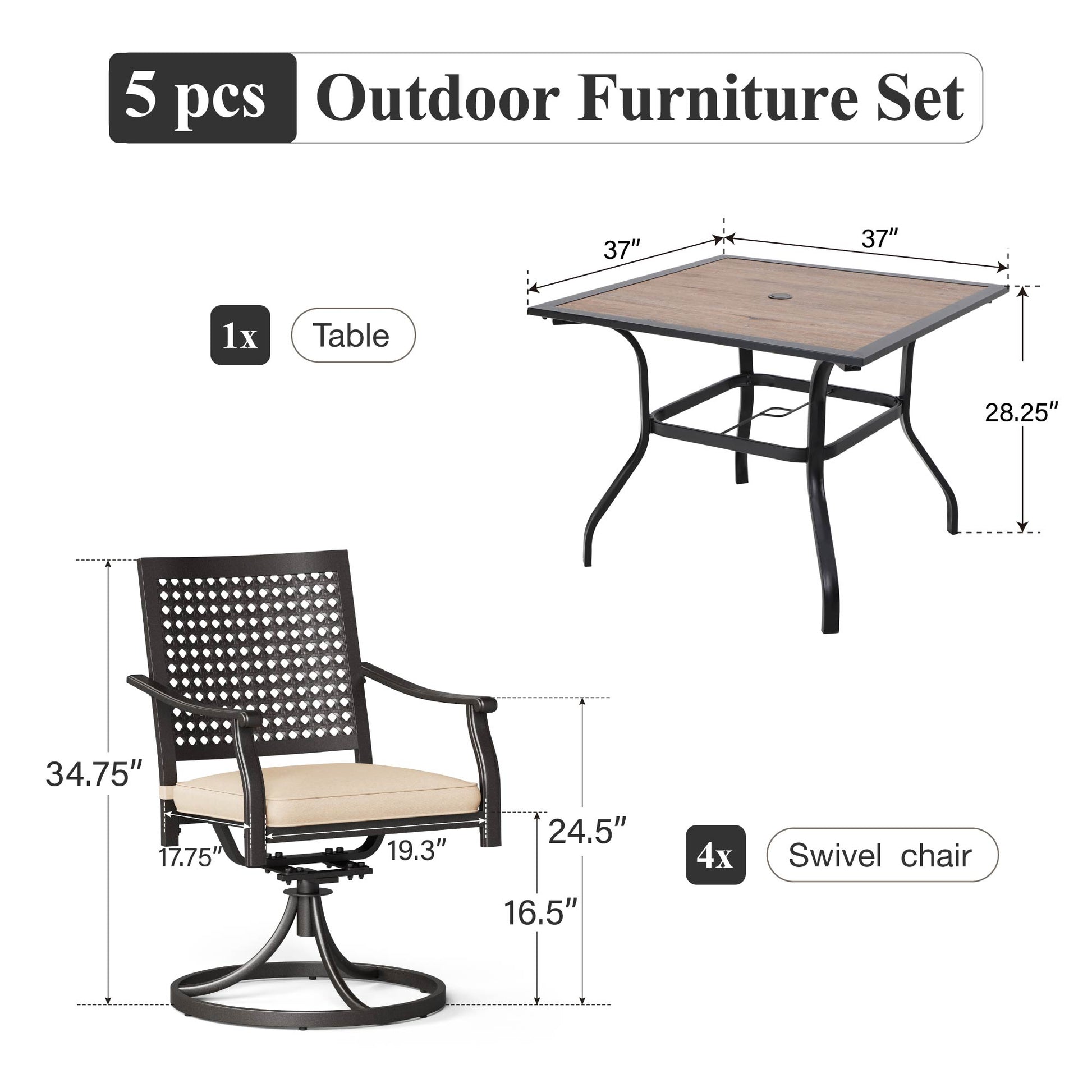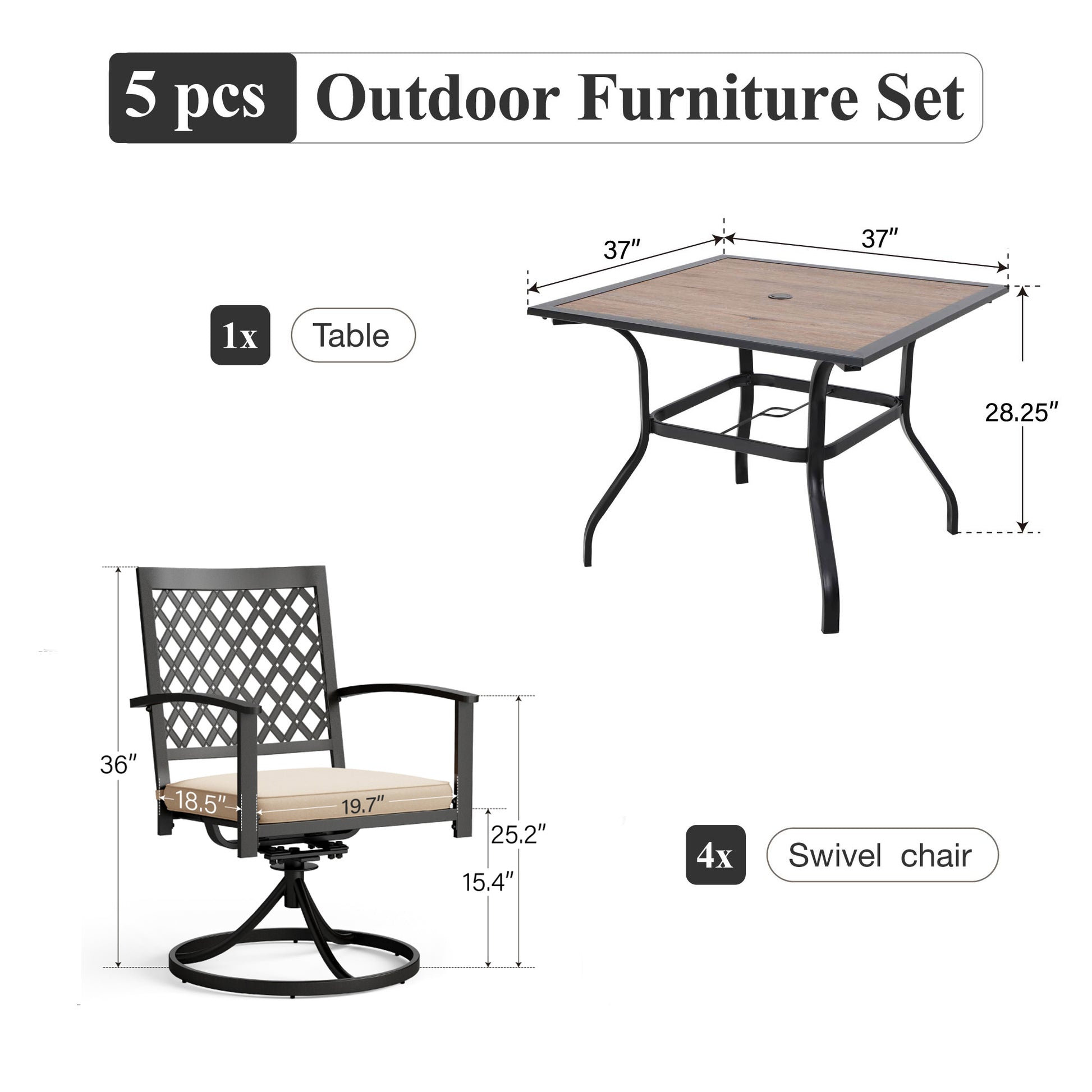 <b>坚固耐用的结构:</b>该套装采用电子涂层和粉末涂层钢框架制成,旨在承受户外条件,确保持久的享受。