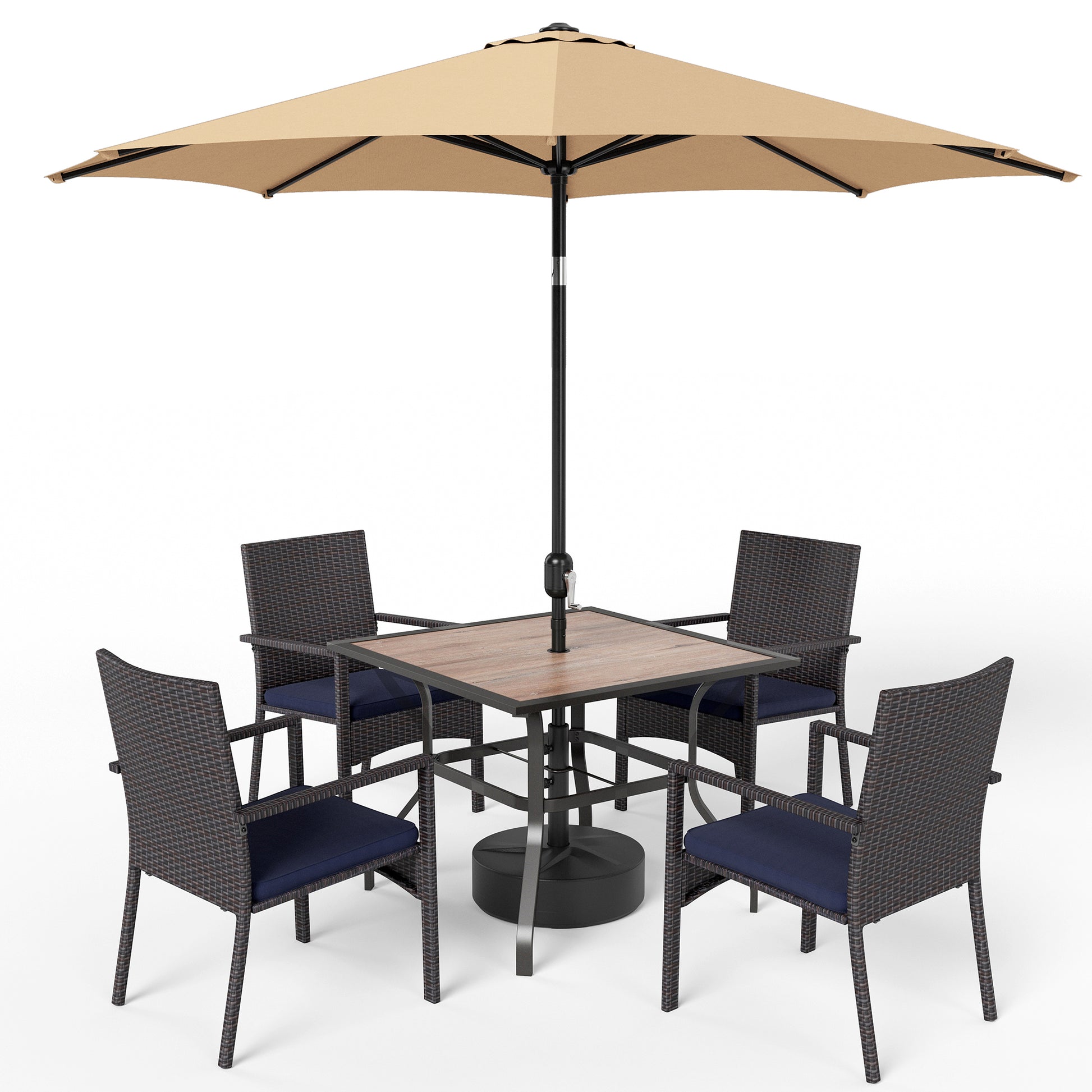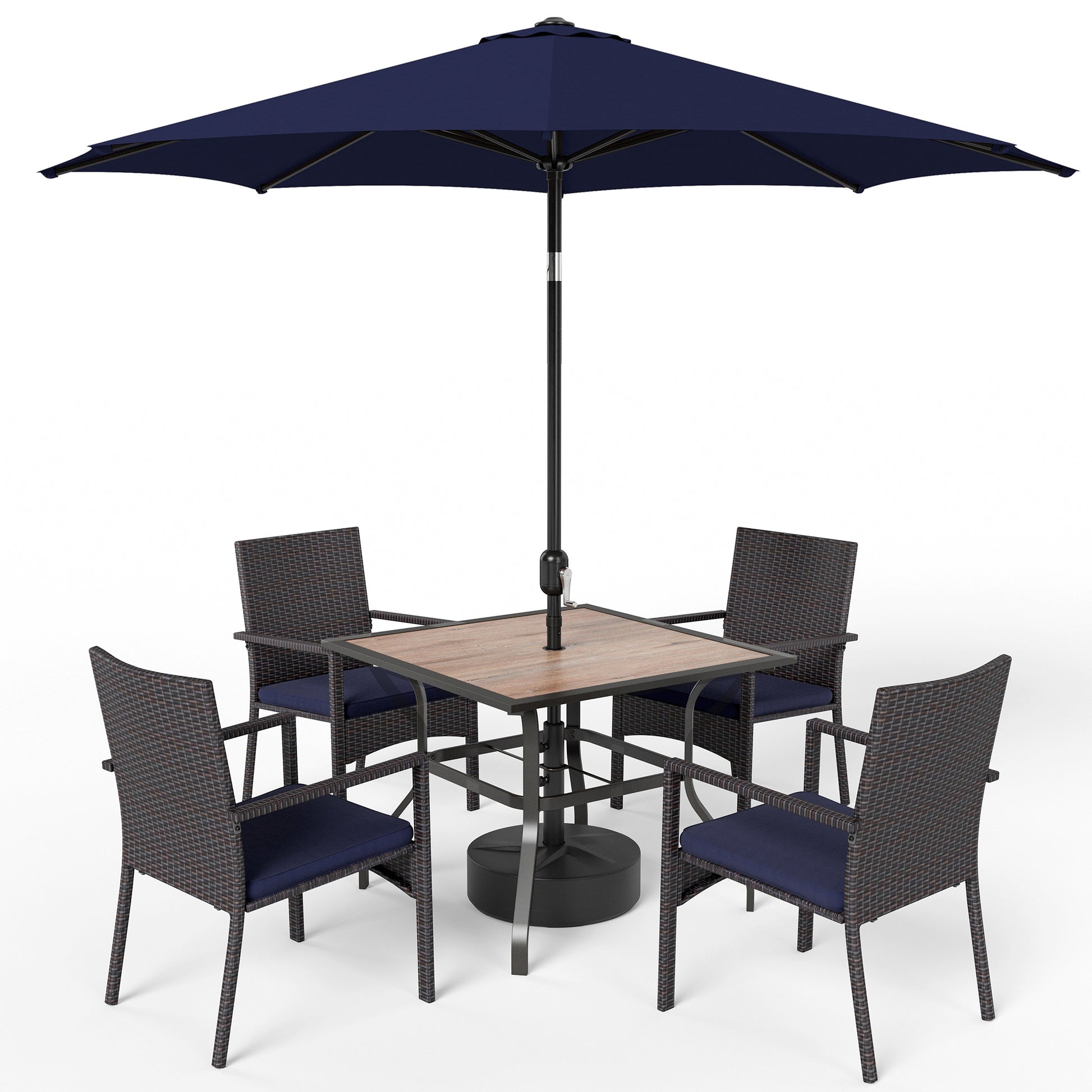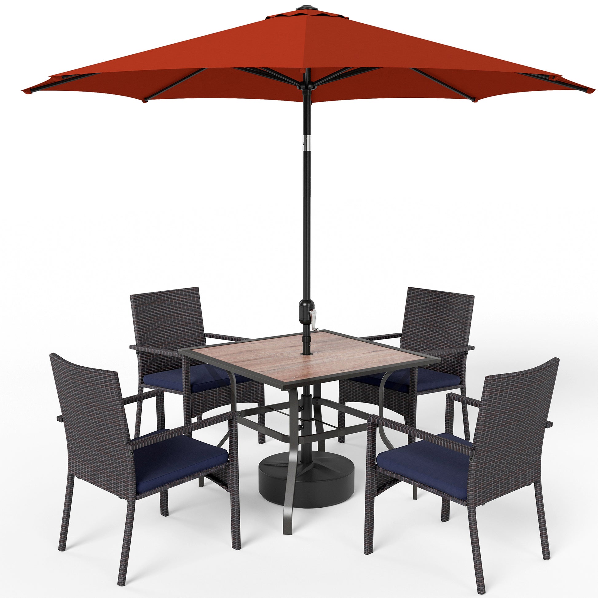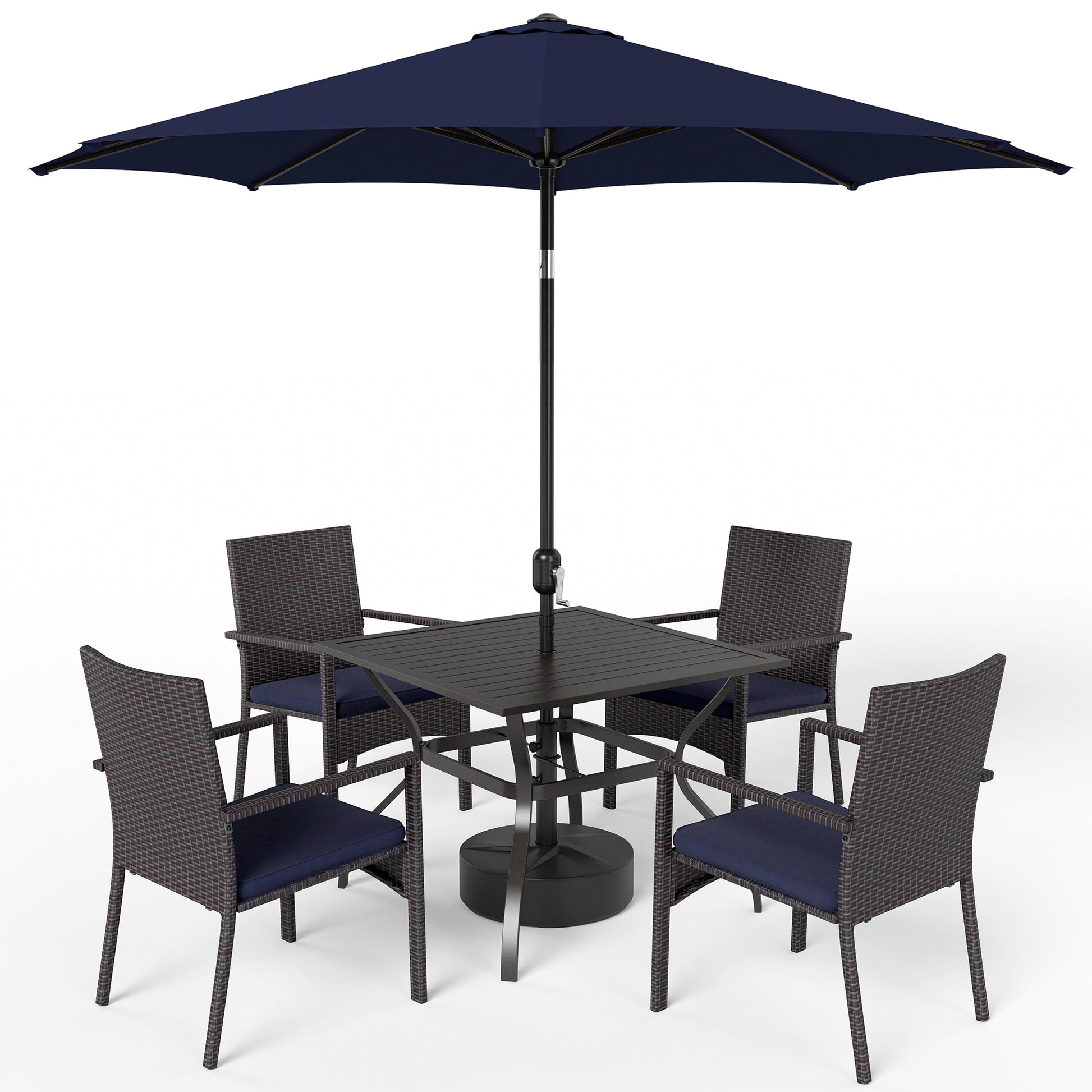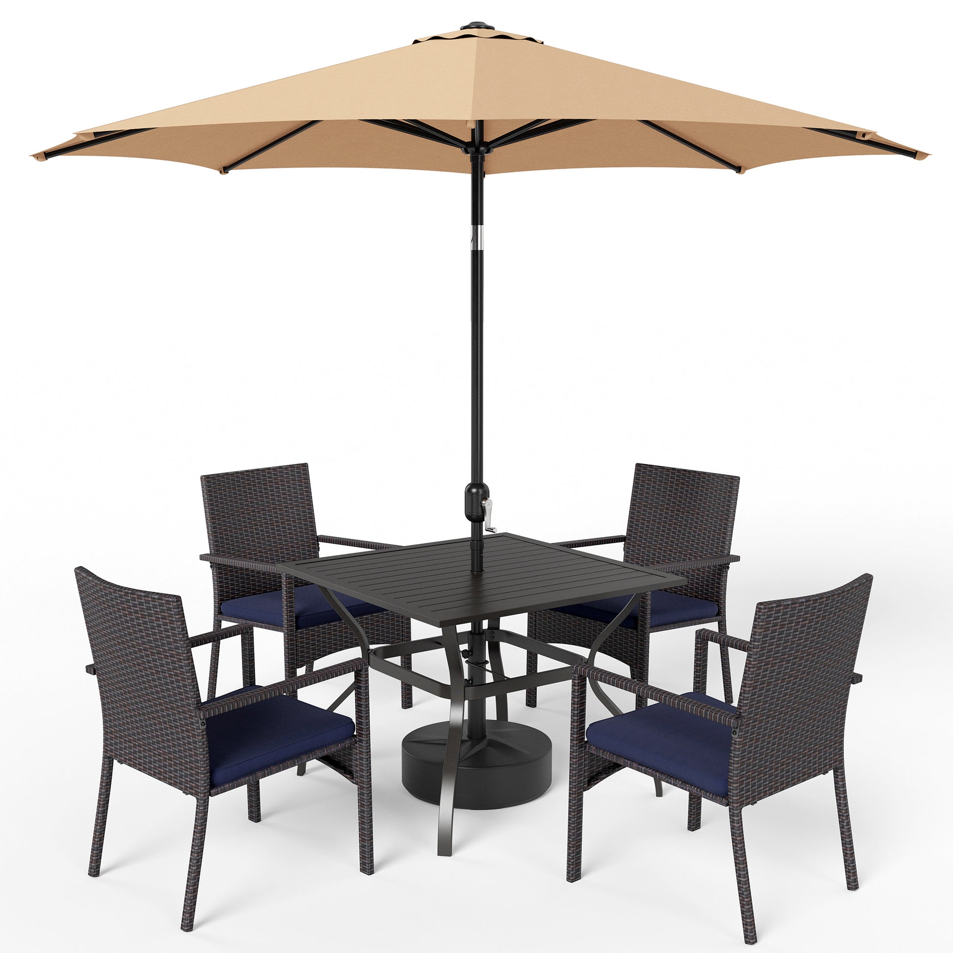 Captiva Designs 9 件套庭院几何图案可扩展钢制矩形桌和时尚软垫旋转扶手椅