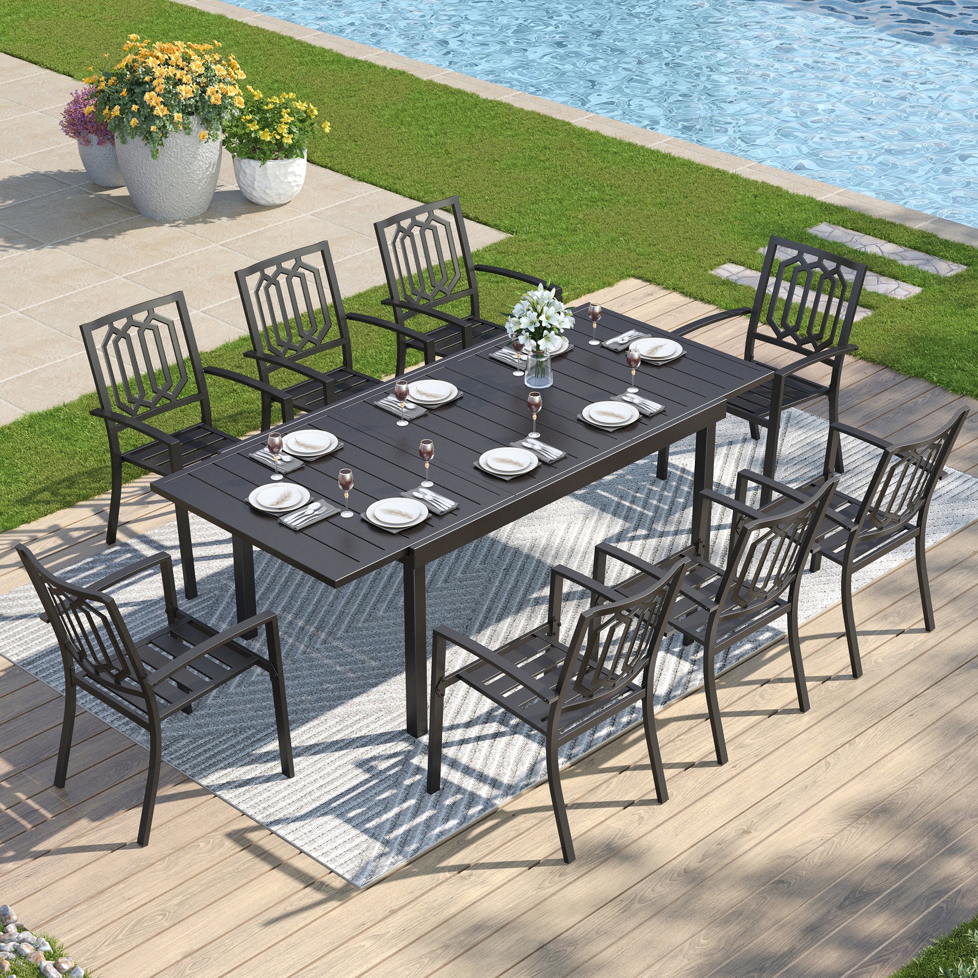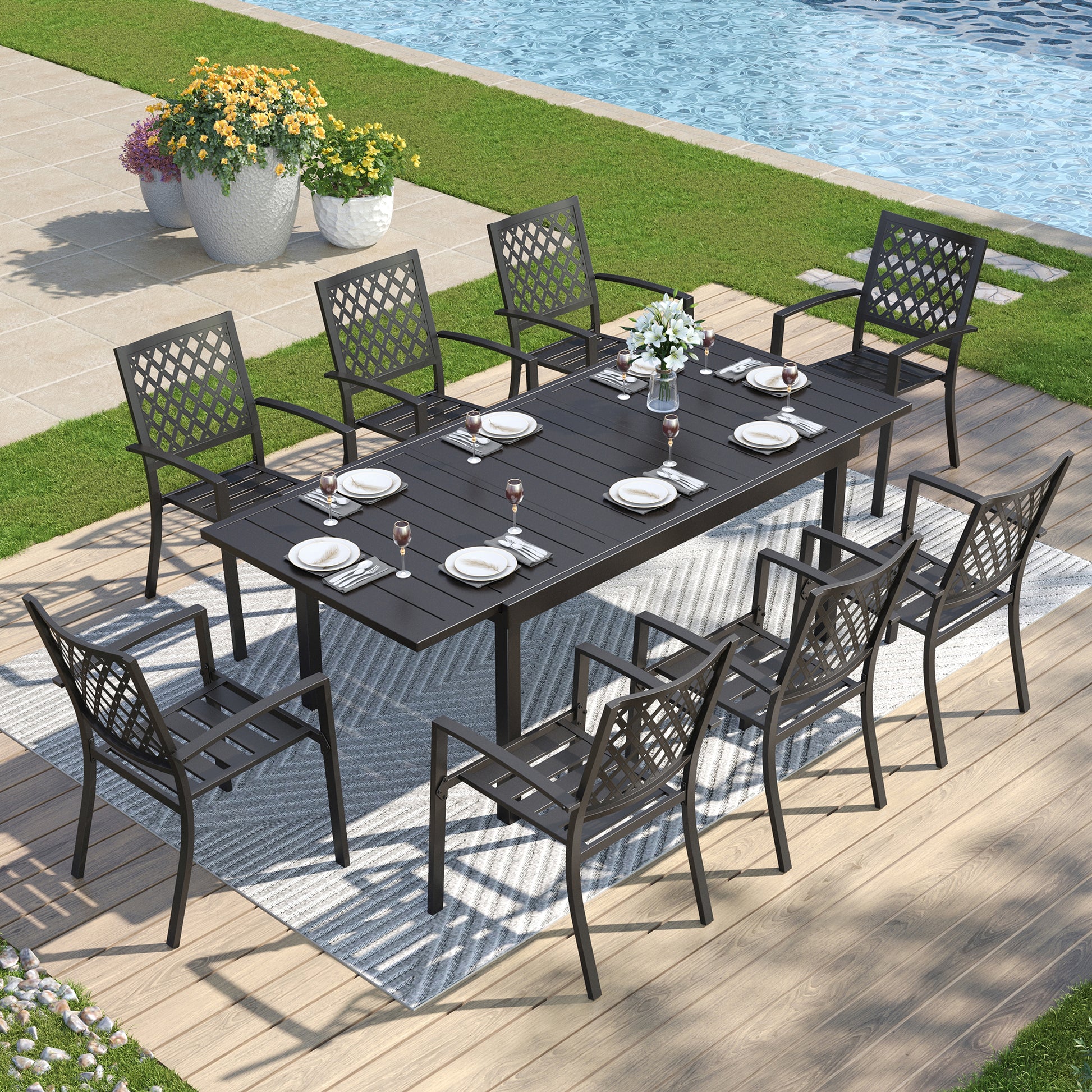 Captiva Designs 9 件套露台板顶可调节钢制矩形桌和金属可叠放椅子,带剥离式靠背