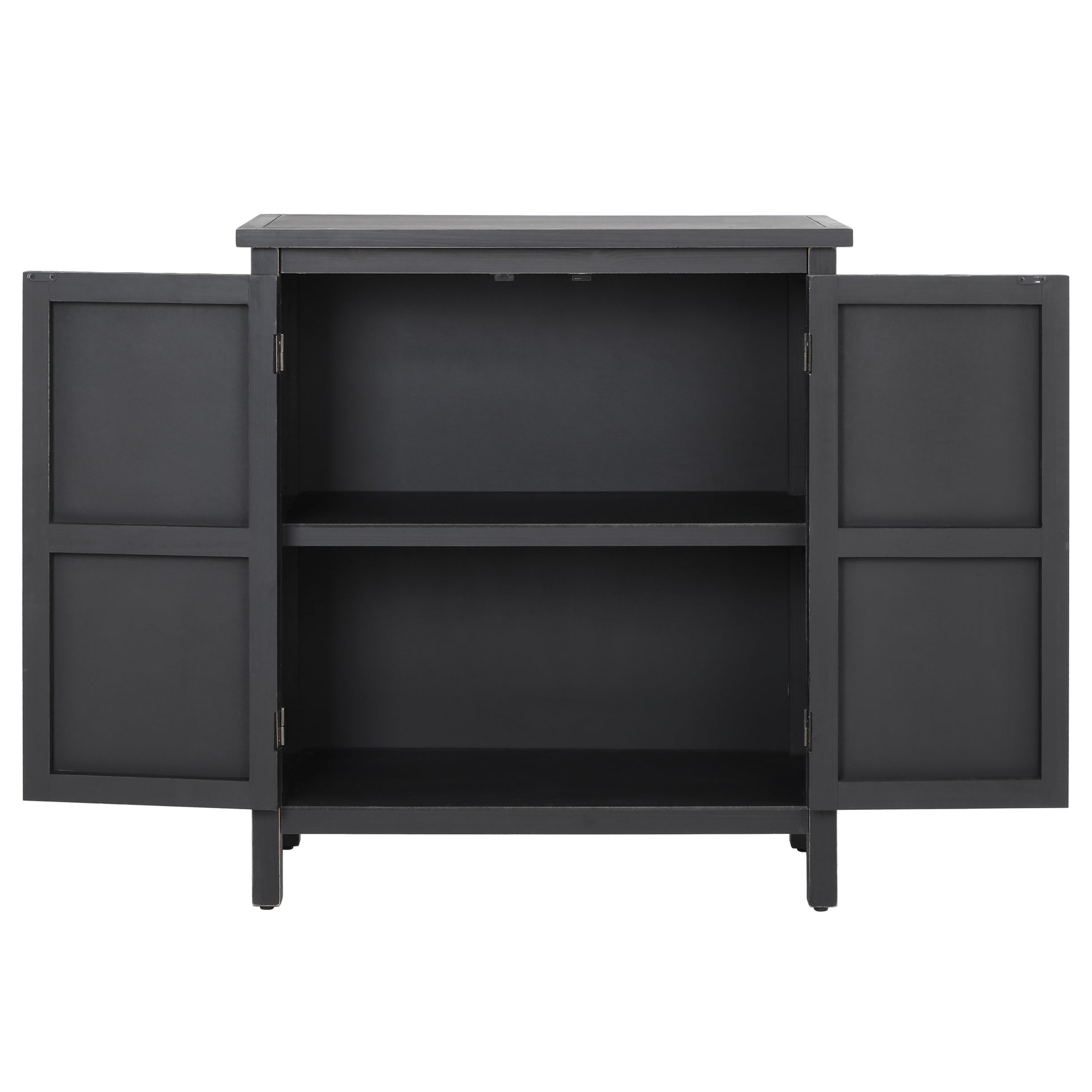 Boasting an elegant rustic charm with intricate floral carvings and chic satin finish, this versatile accent cabinet offers a perfect blend of style and function. Its tabletop provides an ideal stage for displaying decor, plants, and photos, while the double-door enclosed storage keeps belongings clean and organized. Designed to fit seamlessly in entryways, living rooms, or kitchens, it serves wonderfully as a console table, coffee bar, or sofa-side companion. Built with a solid fir wood frame and MDF construction, this durable piece reliably supports up to 90 lbs, making it as sturdy as it is beautiful.