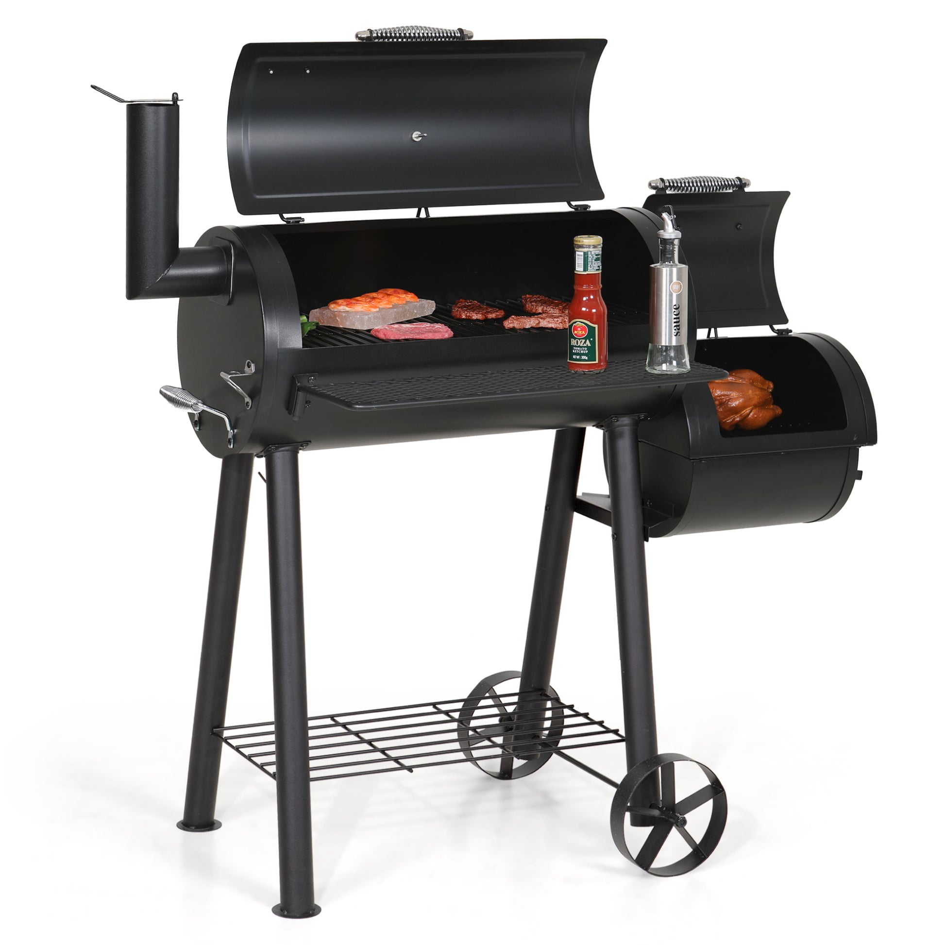 Captiva Designs 带偏置烟熏器的木炭烤架 - 全金属钢结构,512 平方英寸。户外烹饪烹饪区