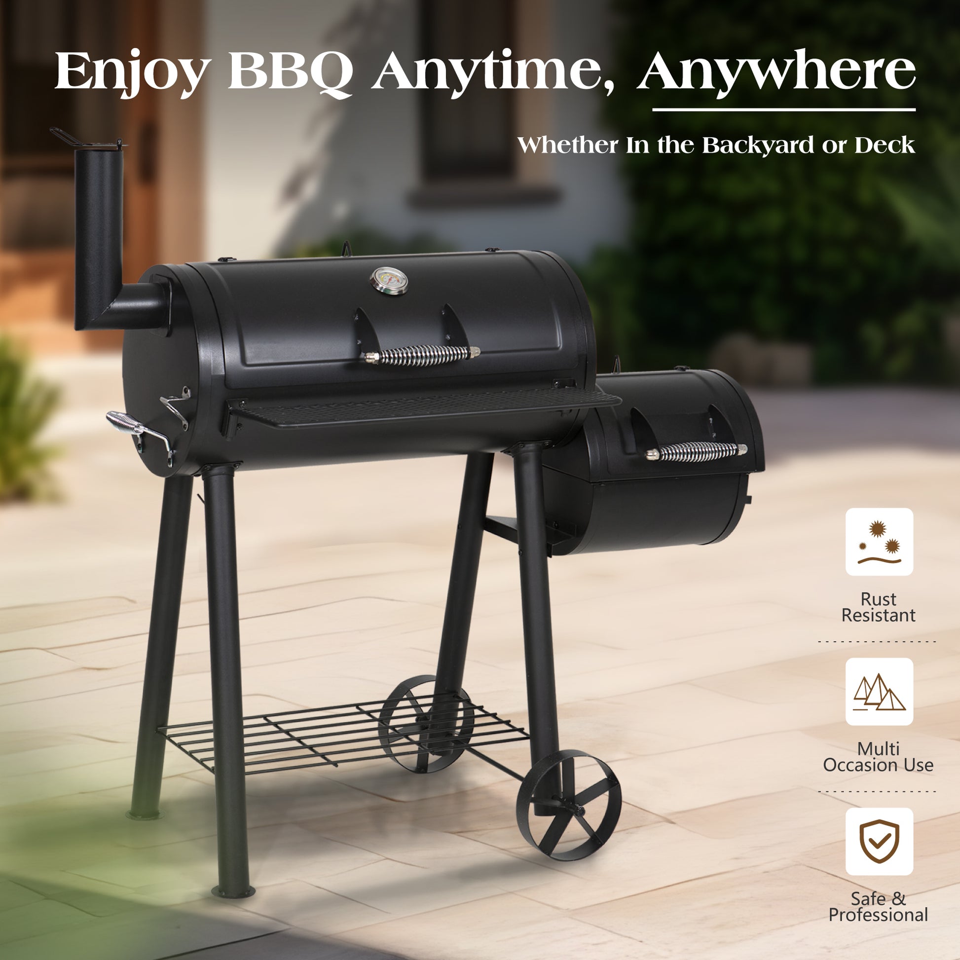 使用配有偏置烟熏器的 Captiva Designs 木炭烤架体验终极户外烹饪冒险。这款烤架采用重型金属结构,经久耐用、稳定可靠,同时确保出色的保温性,始终保持美味。拥有 512 平方英寸的宽敞烹饪区,包括主烧烤区和额外的烟熏区,您可以轻松准备各种令人垂涎欲滴的菜肴。设计巧妙的偏置烟熏器可实现最佳热量循环,非常适合熏制肉类并增强食物的风味。享受高品质的烧烤和烟熏,同时知道只需发送一条消息即可获得专门的客户支持,随时准备为您解答任何问题或疑虑。使用这款多功能烤架,改变您的烹饪技巧并给您的客人留下深刻印象!