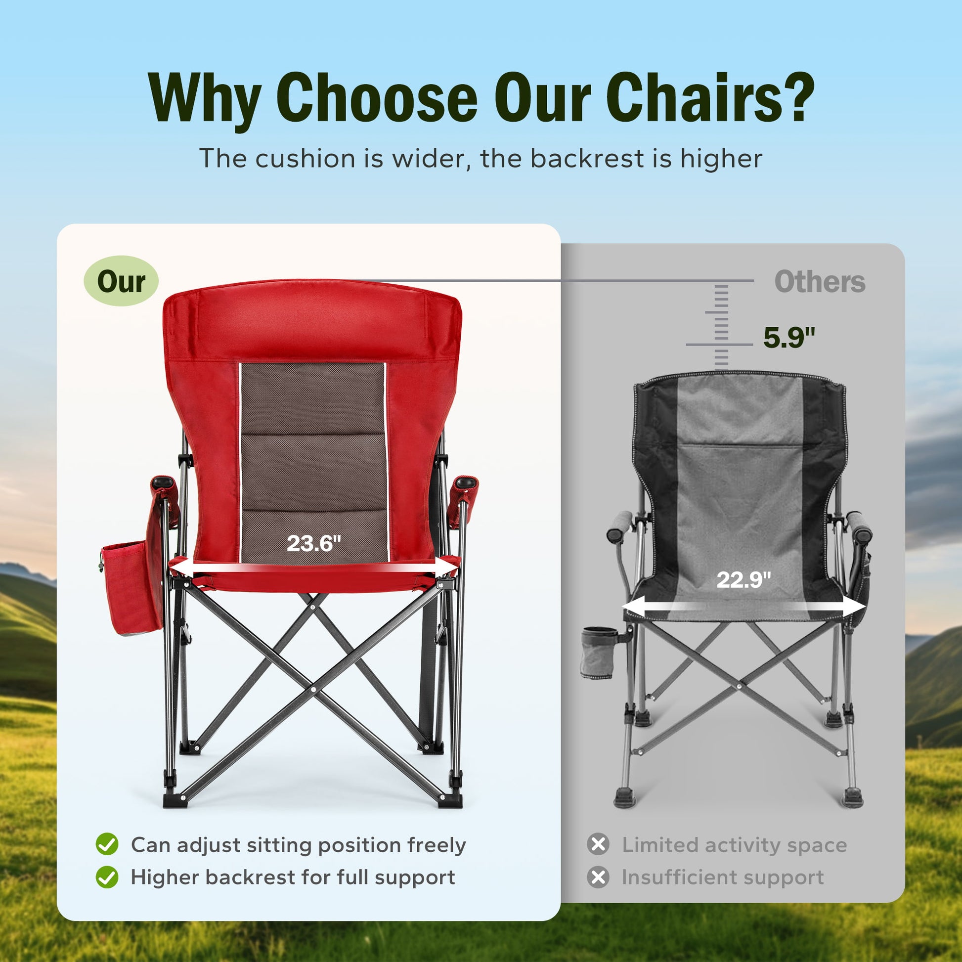 Captiva Designs Heavy Duty XL Camping Chair with Headrest, Cup Holder & Side Pocket, 500 lbs Capacity