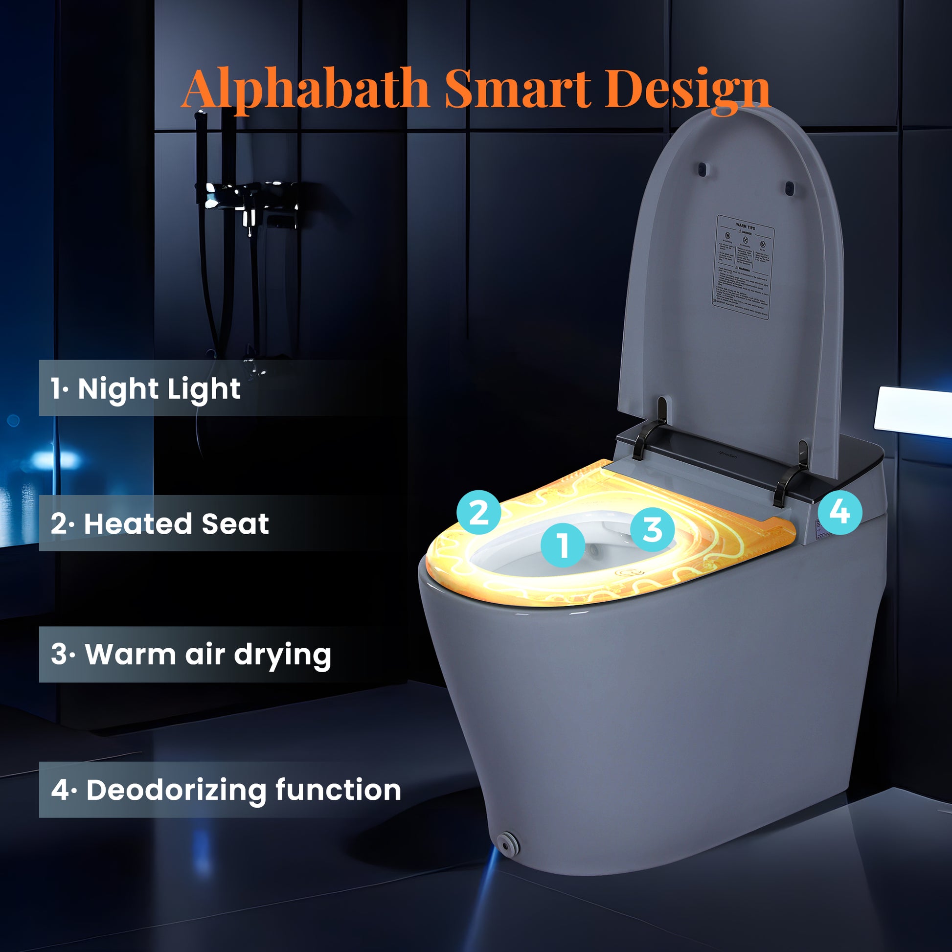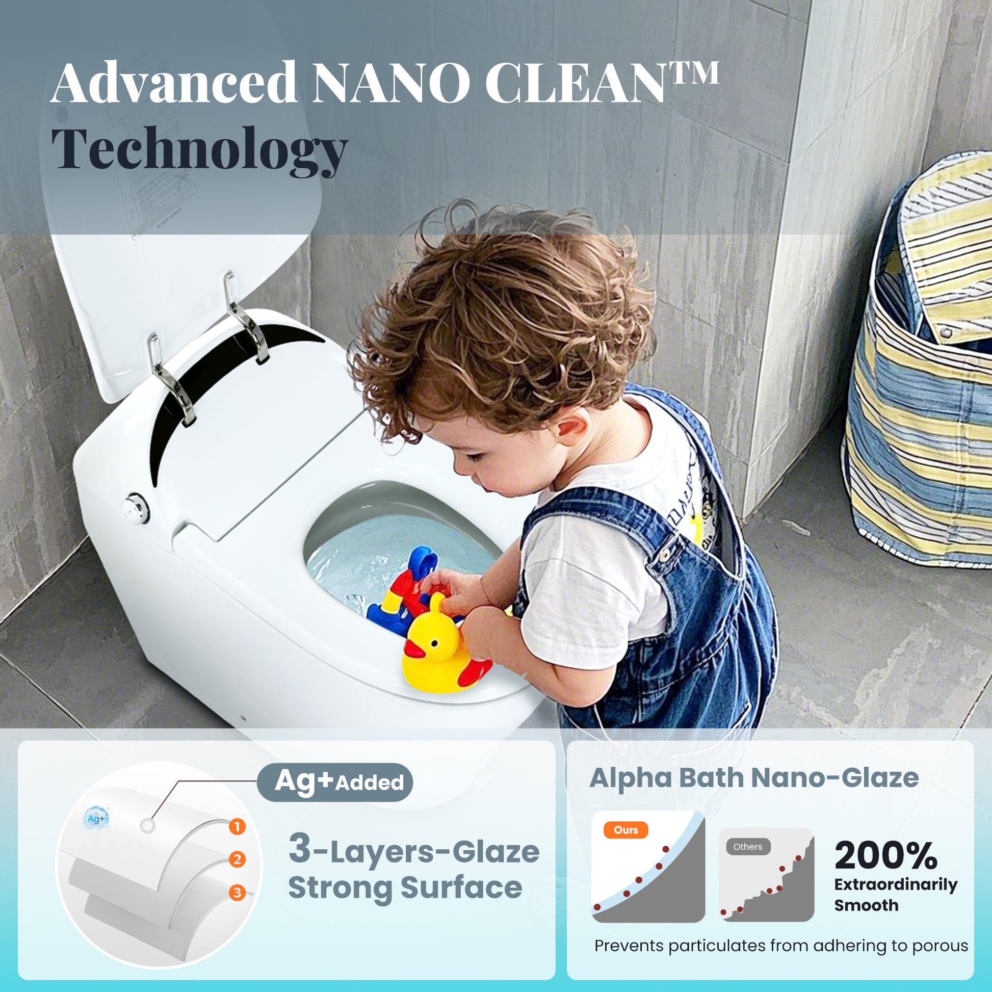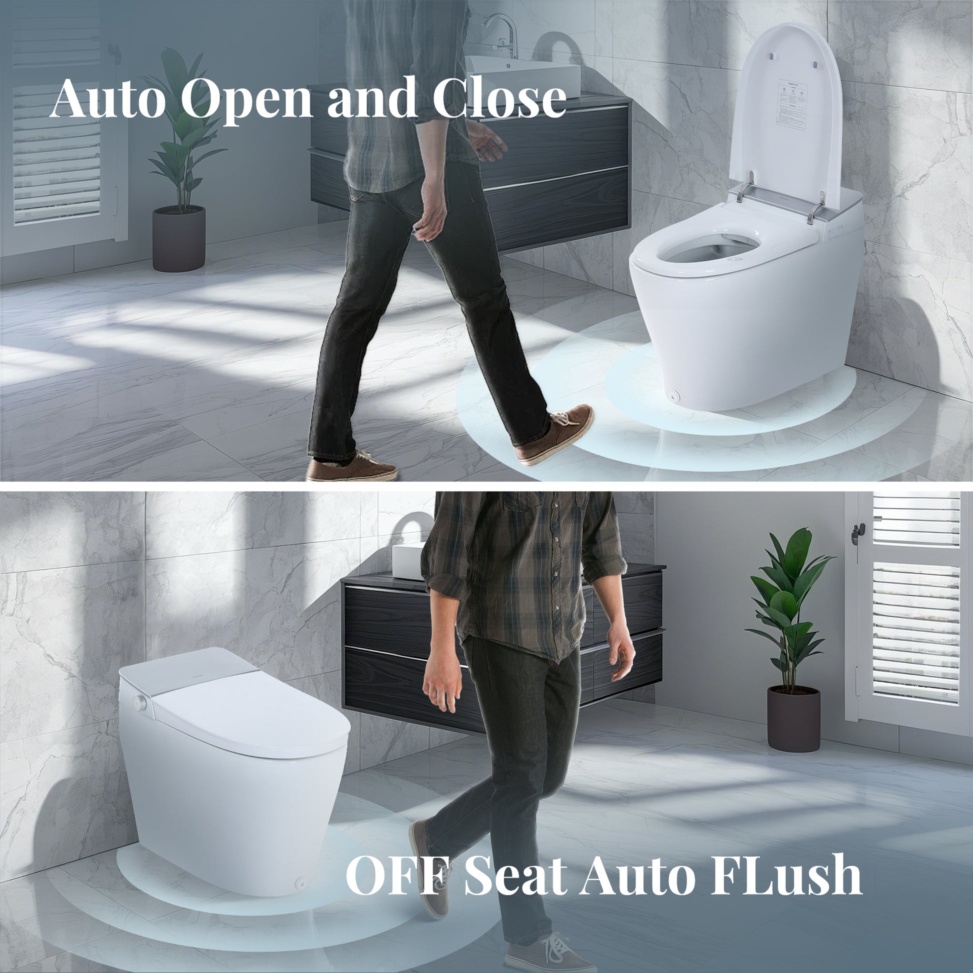 [Captiva Designs] The Captiva Designs Smart Bidet Toilet redefines modern bathroom luxury with certified eco-performance (CUPC/DOE/WaterSense/Green certified). Its industry-leading 360°TSUNAMI Flush™ delivers powerful 1.28GPF cleaning while the Dual-Temperature System offers alternating warm/cool purification through 3 nozzles - supported by independent water filtration and NANO CLEAN™ anti-bacterial glaze. Enjoy hands-free convenience with auto-opening lids and off-seat flushing, plus customizable comfort via heated seating, warm air drying, and nightlight guidance. The ADA-compliant height and dual control options (knob+remote) ensure universal accessibility. With its combination of smart technology and thoughtful design, this toilet delivers reliable daily comfort for modern homes.