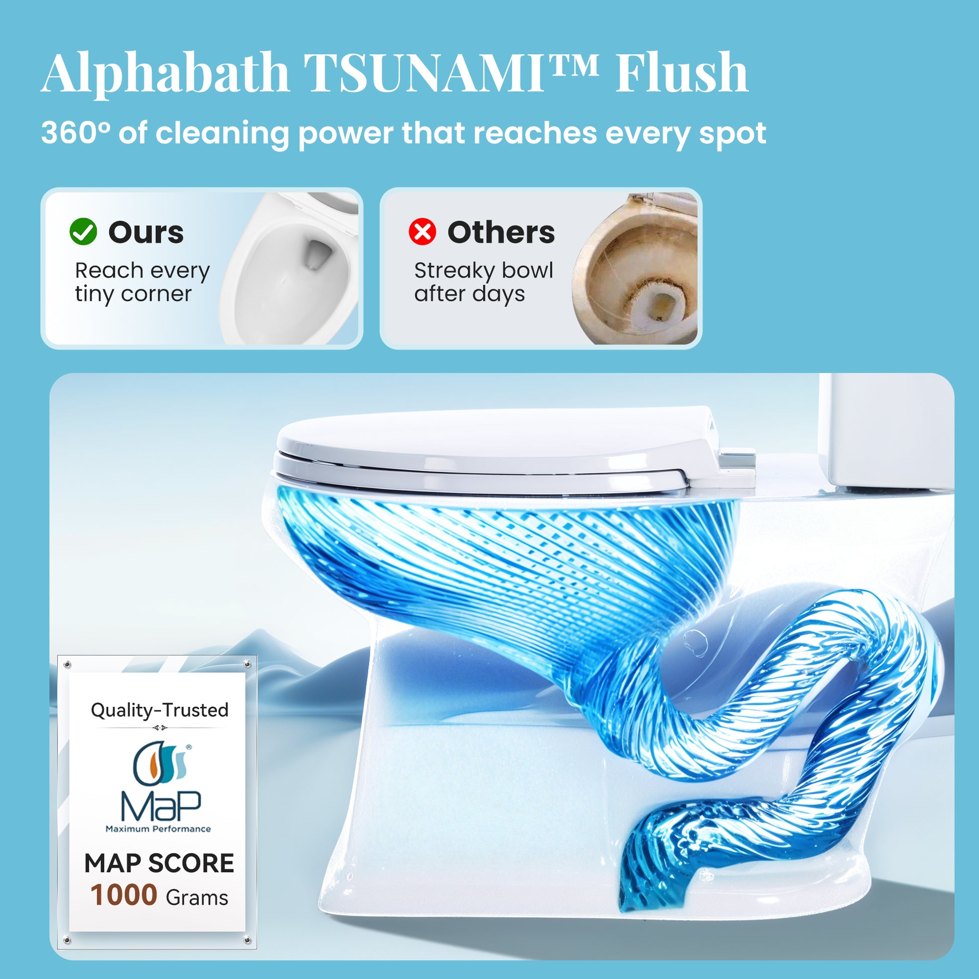 [Captiva Designs] The Captiva Designs elongated toilet redefines bathroom excellence with certified performance. Its industry-leading TSUNAMI™ Flush delivers 1000g waste removal (MAP score) while conserving 30% water (WaterSense certified). The ADA-height seat and 50mm anti-clog trapway combine universal accessibility with reliable functionality. Featuring nano-antimicrobial glaze and self-cleaning properties, it maintains hygiene effortlessly. The hydraulic silent-close seat has passed extreme durability testing for long-term comfort. With CUPC/EPA certifications and modern styling, this toilet offers the perfect balance of innovation and value - an exceptional choice for discerning homeowners.